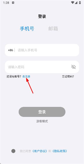 1、在登录页面点击去注册选项,进入注册账号页面。