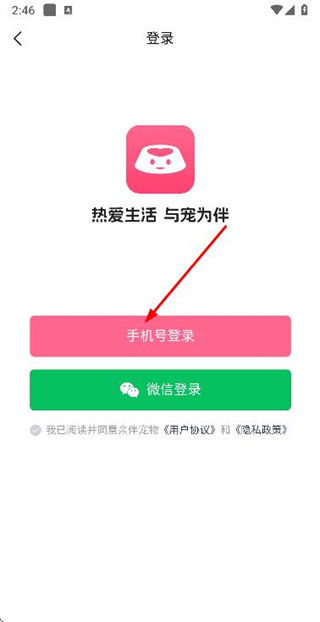 3、在登录选择页面点击手机号登录,进入手机登录页面。