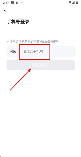 4、在手机登录页面填写手机号,点击获取验证码。
