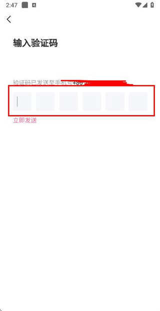 5、在输入短信验证码页面填写收到的验证码,完成账号的登录操作。