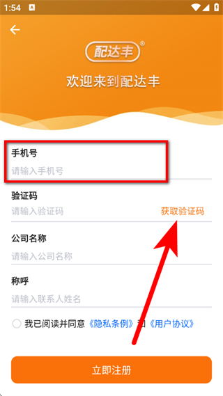3、在注册页面,输入手机号,点击获取验证码。