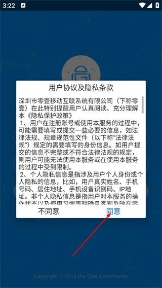 1、在用户协议及隐私条款弹窗中,点击同意,进入登录页面。