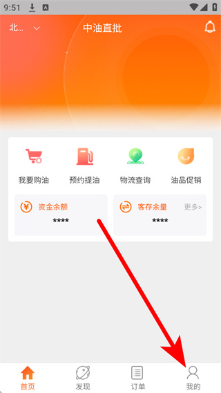1、打开中油直批,在首页点击底部导航栏的我的,进入个人页面。