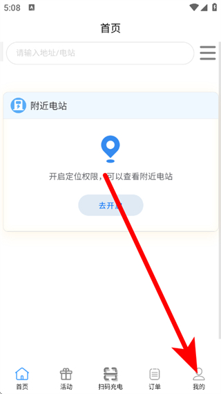 1、打开安悦充电桩,在弹出提示框,点击同意并接受,进入首页。