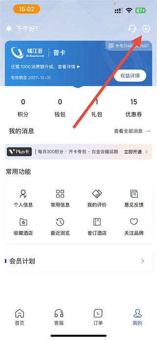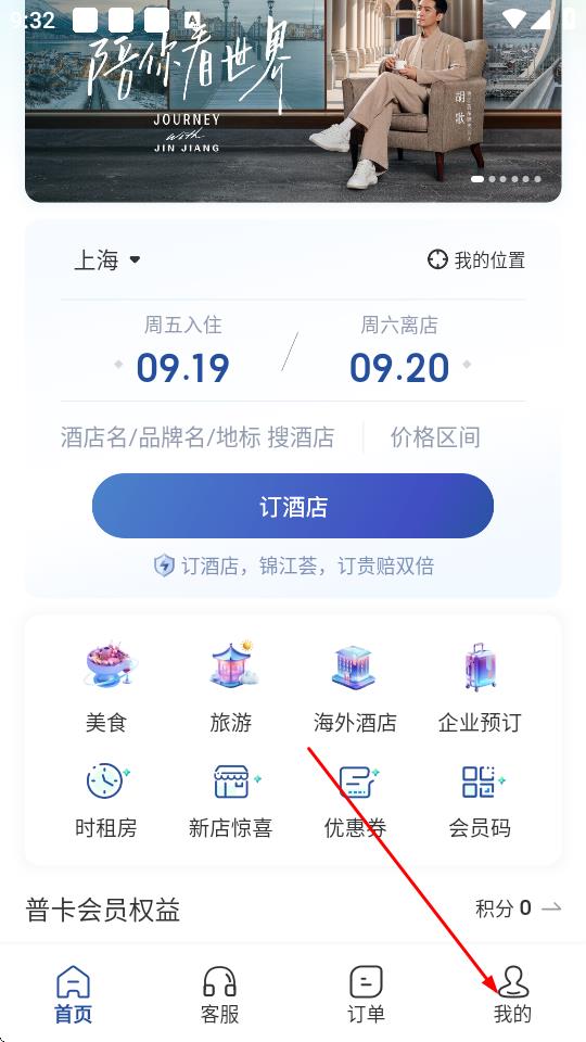 1、打开锦江荟APP,点击底部导航栏中的我的。
