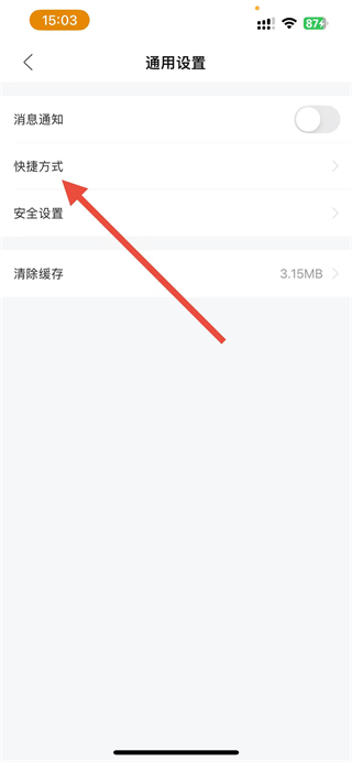 4、在通用设置页面,点击快捷方式,进入快捷方式设置界面。
