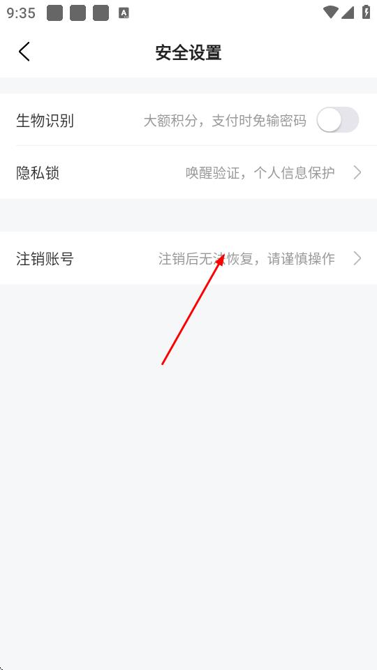 5、进入安全设置页面后,点击注销账号。