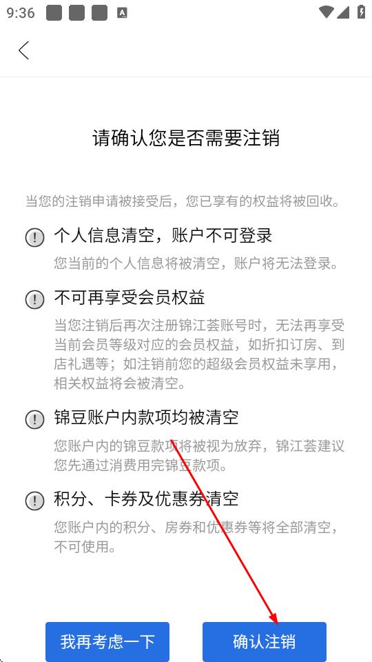 8、在确认是否需要注销页面,点击确认注销,完成账号注销。