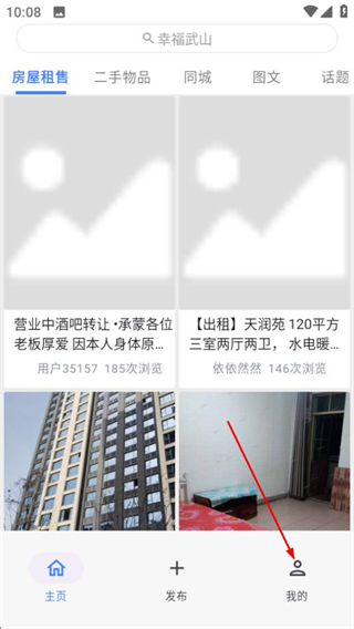 1、在幸福武山首页,点击底部的我的选项,进入个人中心页面。