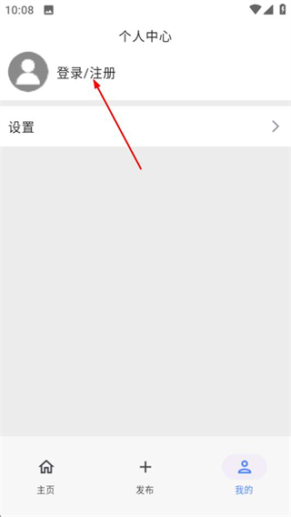 2、在个人中心页面,点击登录注册选项,进入登录选择页面。