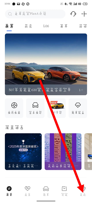 1、打开长安深蓝,点击底部我的,进入个人页面。