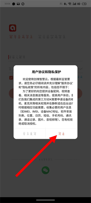 1、打开创维智慧云摄像头,在弹出提示框,点击同意,进入登录页面。