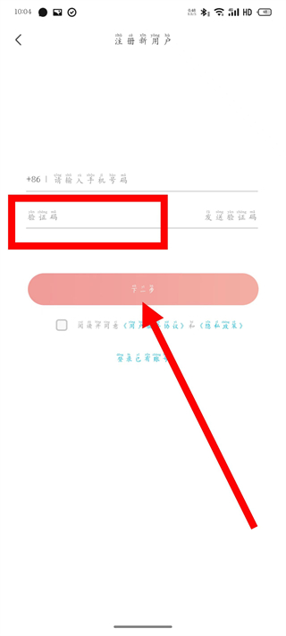 4、在输入框,输入验证码,勾选相关协议后,点击下一步,完成注册操作。