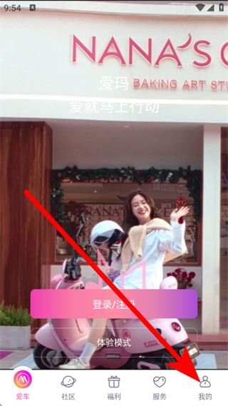 1、打开爱玛出行,点击底部的我的,进入我的页面。