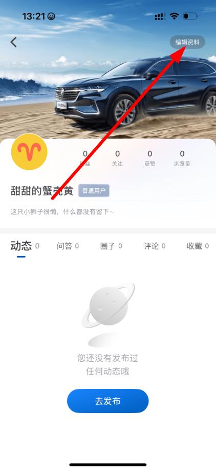3、在个人主页右上角找到编辑资料按钮并点击,进入个人资料编辑界面。