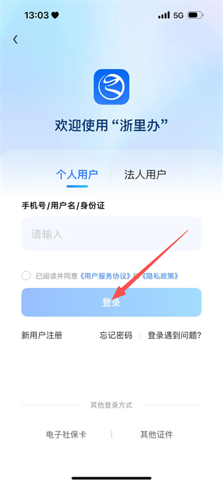3、在登录页面的个人用户栏,填写手机号,点击登录,完成账号登录。