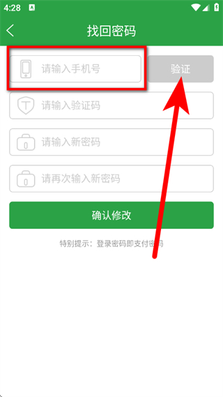 3、输入验证码,输入新密码,点击确认修改,完成密码找回操作。