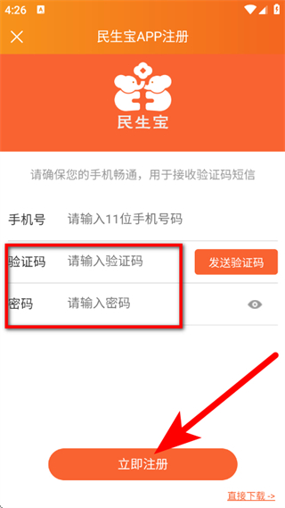 5、在输入框,输入验证码,设置密码后,点击立即注册,完成注册。