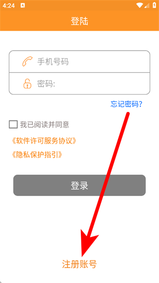 2、在登录页面,点击注册账号,进入注册账号页面。