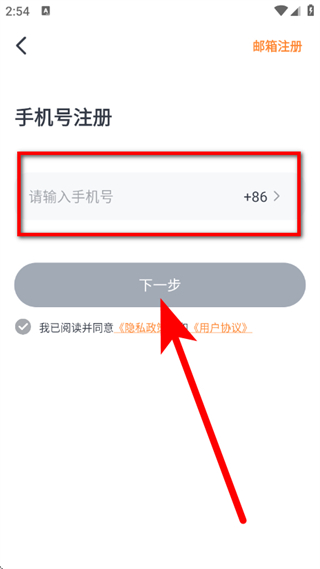 2、在手机号注册页面,输入手机号,勾选后,点击下一步。