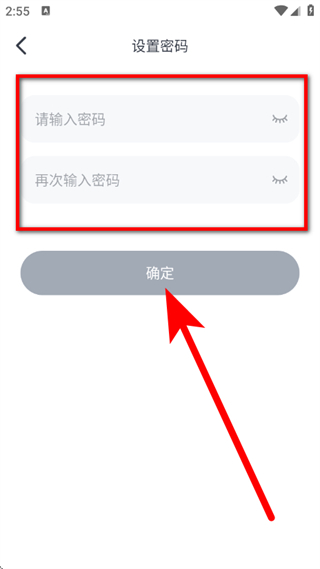 4、在设置密码页面,设置密码,点击确定,完成注册。