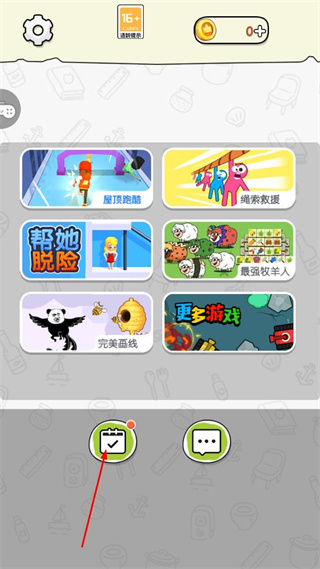 1、打开绳索救援软件,找到界面下方带对勾的日历图标并点击,进入签到页面。