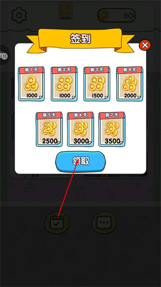 2、在签到页面中,点击蓝色的领取按钮,获取对应天数的金币奖励。