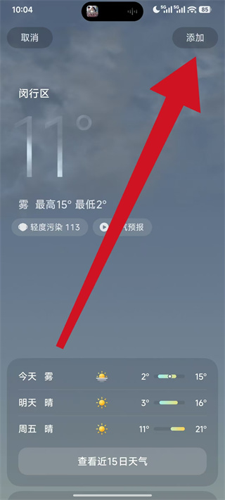 4、在选中的城市详情页面,点击右上角的添加,完成该城市的添加。