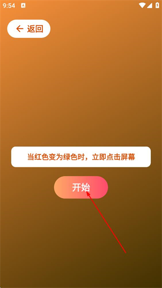 4、在测试过程中,当屏幕变为绿色并显示快点屏幕时,点击屏幕完成该轮反应测试。