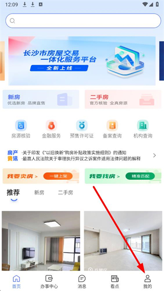 1、在长沙住房主界面中,点击底部我的选项,进入个人页面。