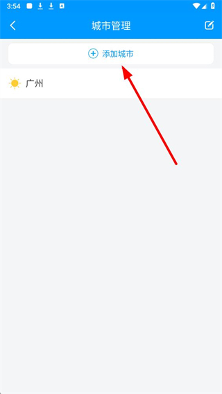 2、在当前页面,点击添加城市选项,进入添加城市的搜索与选择界面。