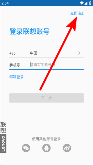 3、在登录页面,点击右上角立即注册,进入注册联想账号页面。