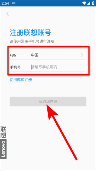 5、在输入动态码页面,填写收到的动态码,完成联想账号注册。