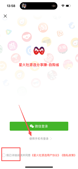 2、在登录选择页面,点击使用手机号登录选项,进入验证码登录页面。