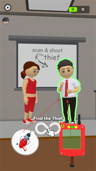 2、用扫描工具锁定目标角色,使用攻击道具,确认小偷身份推进关卡。