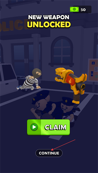 4、成功抓获小偷可获得新武器,点击领取奖励后进入下一关。
