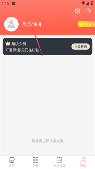 2、在个人中心页面,点击登录注册按钮进入登录界面。