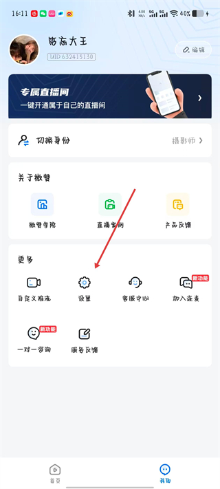2、在个人中心页面,找到设置选项并点击进入设置。