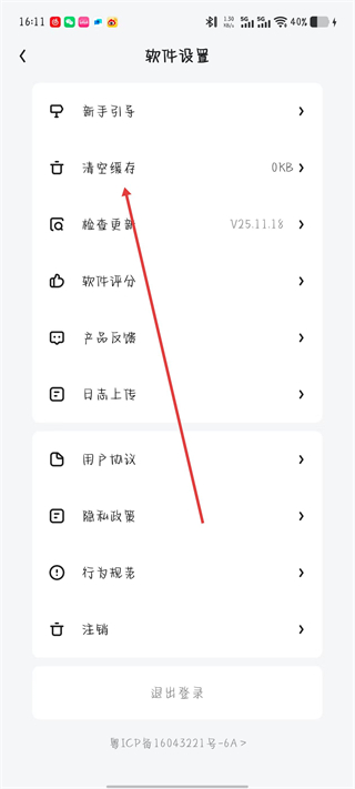 3、在设置界面中,找到清空缓存选项并点击。