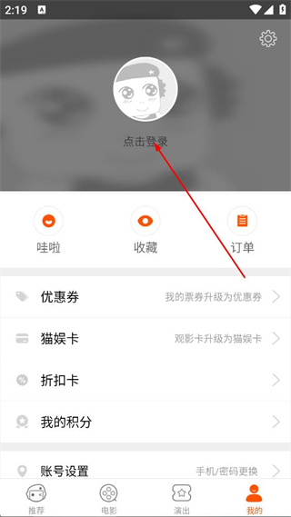 3、在个人中心页面,点击点击登录区域,进入账号登录操作界面。