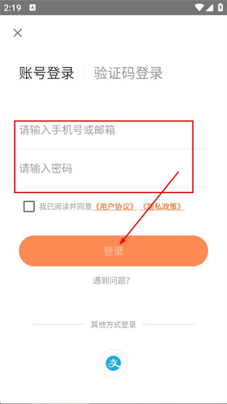 4、在账号登录界面,填写手机号、密码,点击登录,完成账号登录。