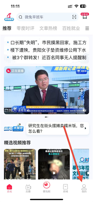 1、在百姓关注应用界面,找到底部我的选项并点击,进入个人页面。