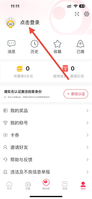 2、在个人页面中,找到点击登录区域并点击,进入百姓关注的登录界面。