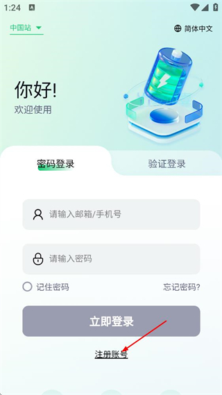 2、在易能云的登录页面,点击注册账号选项,进入注册的选择页面。