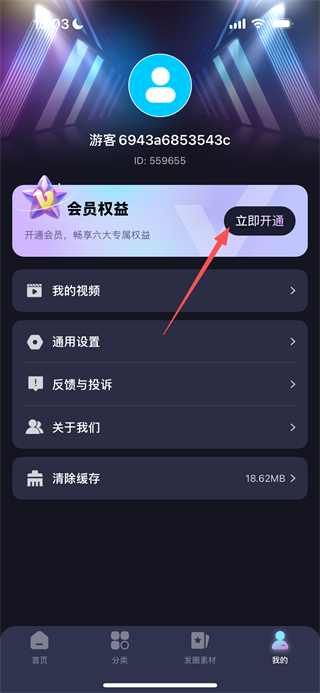 2、在个人中心页面,点击立即开通按钮进入会员权益解锁界面。