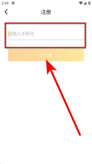3、在注册页面,输入手机号,点击下一步。