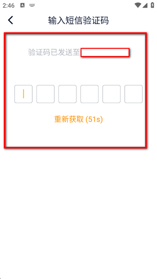 4、在输入短信验证码页面,在输入框填写验证码,完成注册。
