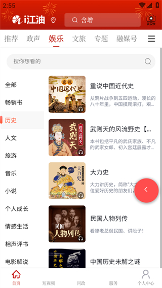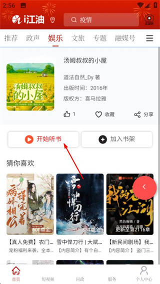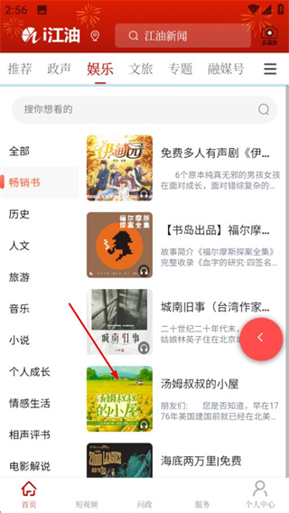 1、在i江油首页,点击顶部娱乐选项进入娱乐频道页面。