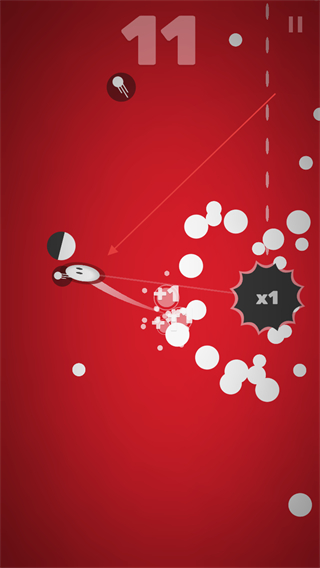 1、操控小球碰撞白色圆点,触发x2翻倍效果,积累数值推进游戏。