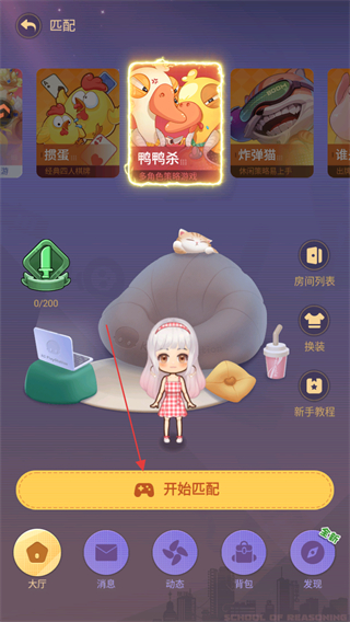 1、在匹配界面,选择鸭鸭杀模式,点击开始匹配按钮,进入游戏房间。
